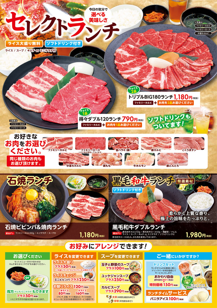 日本有很多连锁自助餐餐馆,日语的自助餐叫"放题", 吃的(食べ放題)和喝的(飲み放題)是分开的。一般都有时间限制,还有最后点餐的时间限制,一般最后点餐是在整个结束的前半小时,意思是你最后一次点了之后还有半小时吃完走人。有平价的也有贵的。介绍几个东京比较常见的烤肉店(日语是烧肉)